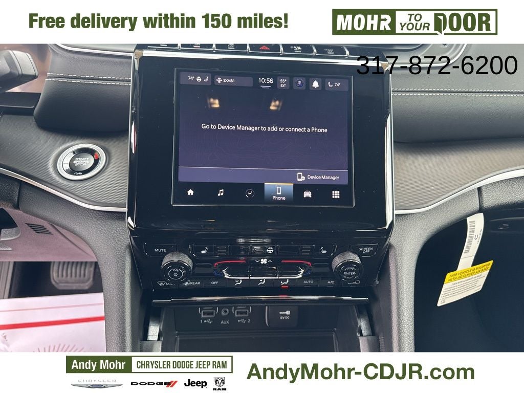 Trailer Tow Package (180 Amp Alternator, 7 and 4-Pin Wiring Harness, Automatic Headlamp Levelling System, Class IV Receiver Hitch, Heavy-Duty Engine Cooling, Rear Load Levelling Suspension, and Trailer Hitch Zoom), Quick Order Package 23M Altitude X (Heated Front Seats, Heated Steering Wheel, Power Liftgate, Power Sunroof, Wireless Charging Pad, 115V Auxiliary Power Outlet, Altitude X, Black Headliner, Capri Leatherette/Suede Seats, Delete Laredo Badge, Gloss Black Exterior Accents, Rain Sensitive Windshield Wipers, Remote Start System, Selectable Tire Fill Alert, and Wheels: 18 x 8 Fully Painted Aluminum 1), Heated door mirrors, Power driver seat, Power windows, Rear window defroster, Remote keyless entry, Steering wheel mounted audio controls, Telescoping steering wheel, Wheels: 20 x 8.5 Gloss Black Painted Aluminum, 4-Wheel Disc Brakes, 6 Speakers, ABS brakes, Air Conditioning, Alloy wheels, AM/FM radio: SiriusXM, Anti-whiplash front head restraints, Automatic temperature control, Brake assist, Bumpers: body-color, Cloth Seats, Compass, Delay-off headlights, Driver door bin, Driver vanity mirror, Dual front impact airbags, Dual front side impact airbags, Electronic Stability Control, Emergency communication system, Four wheel independent suspension, Front anti-roll bar, Front Bucket Seats, Front Center Armrest w/Storage, Front dual zone A/C, Front License Plate Bracket, Front reading lights, Fully automatic headlights, Illuminated entry, Knee airbag, Low tire pressure warning, Model Year Tracking, Normal Duty Suspension, Occupant sensing airbag, Outside temperature display, Overhead airbag, Overhead console, Panic alarm, ParkView Rear Back-Up Camera, Passenger door bin, Passenger vanity mirror, Power door mirrors, Power steering, Radio data system, Radio: Uconnect 5 with 8.4 Display, Rear anti-roll bar, Rear reading lights, Rear window wiper, Security system, Speed control, Speed-Sensitive Wipers, Split folding rear seat, Spoiler, Tachometer, Tilt steering wheel, Traction control, Trip computer, Variably intermittent wipers, Voltmeter, and Wheels: 17 x 6.5 Fully Painted AluminuM. Price includes: $2250 - 2025 National Retail Bonus Cash . Exp. 02/02/2026 $750 - 2025 Great Lakes BC Retail Bonus Cash. Exp. 02/02/2026