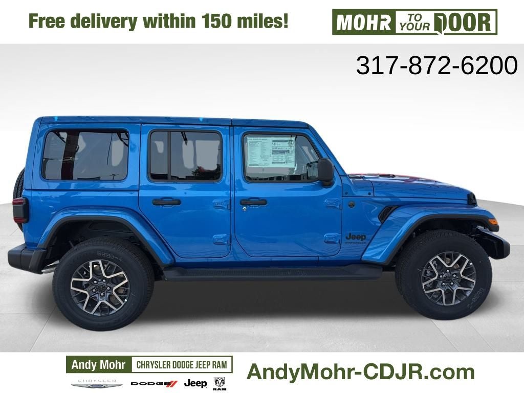 Andy Mohr Chrysler Dodge Jeep Ram is proud to offer this 2025 Jeep Wrangler Sahara in Hydro Blue Pearl Coat with Black Cloth. This Wrangler is very well equipped with Trailer Tow & Aux Switch Group (7 & 4 Pin Wiring Harness, Auxiliary Switches, and Class II Receiver Hitch), Apple CarPlay, Apple CarPlay/Android Auto, Heated door mirrors, Heated steering wheel, Integrated roll-over protection, ParkView Rear Back-Up Camera, Power windows, Rear Window Defroster, Remote keyless entry, and Telescoping steering wheel.
