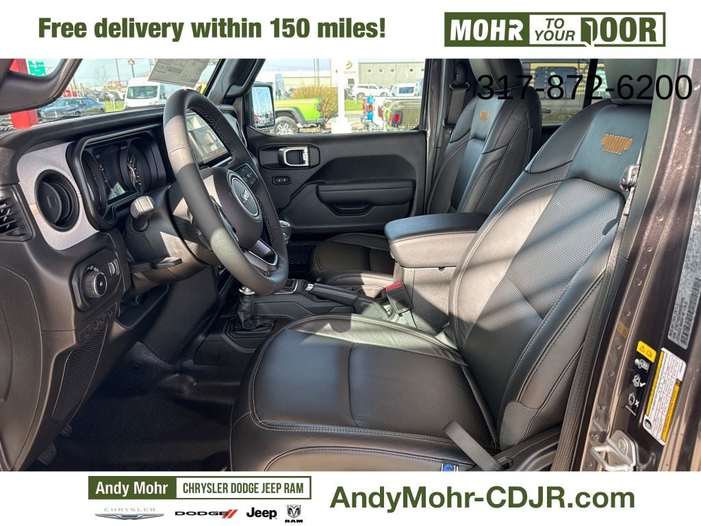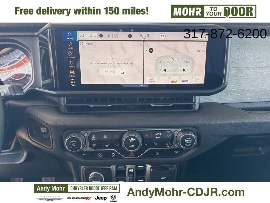 LED Headlamp & Fog Lamp Group (Front LED Fog Lamps and LED Premium Reflector Headlamps), Safety Group (Auto High Beam Headlamp Control, Blind Spot & Cross Path Detection, Injection Molded Black Rear Bumper, LED Taillamps, and ParkSense Rear Park Assist System), Technology Group (DISC) (Alpine Premium Audio System), Convenience Group (Heated Front Seats, Heated Steering Wheel, Remote Start System, Universal Garage Door Opener, 2-Door Passive Entry, Front Door Locks, Air Conditioning w/Auto Temperature Control, Air Filtering, Cluster 7.0 TFT Color Display, and Emergency/Assistance Call), Quick Order Package 23S Sport S (Enhanced Adaptive Cruise Control, Power Heated Mirrors, Advanced Brake Assist, Automatic Headlamps, Corning Gorilla Glass, Deep Tint Sunscreen Windows, Full Speed Forward Collision Warning Plus, Premium Wrapped Steering Wheel, Security Alarm, Sun Visors w/Illuminated Vanity Mirrors, and Wheels: 17 x 7.5 Gray), Apple CarPlay/Android Auto, Integrated roll-over protection, Power windows, Rear Window Defroster, Remote keyless entry, Telescoping steering wheel, Traction control, 110 MPH Vehicle Max Speed Calibration, 3.45 Overall Top Gear Ratio, 4-Wheel Disc Brakes, 8 Speakers, ABS brakes, Air Conditioning, AM/FM radio: SiriusXM, Aux Battery, Black 3-Piece Hard Top, Black MOPAR Perforated Leather, Black Vinyl Floor Covering, Brake assist, Cargo Compartment Dress-Up, Cloth Low-Back Bucket Seats, Compass, Delay-off headlights, Driver door bin, Driver vanity mirror, Dual front impact airbags, Dual front side impact airbags, Electronic Stability Control, Freedom Panel Storage Bag, Front anti-roll bar, Front Bucket Seats, Front Center Armrest w/Storage, Front fog lights, Front reading lights, Illuminated entry, Low tire pressure warning, MOPAR American Flag Hood Graphic, Mopar Black Tubular Side Steps, MOPAR Hinge-Gate Reinforcement, MOPAR Plastic Door Sill Guards, MOPAR Satin Black Grille, Non-Lock Fuel Cap w/o Discriminator, Normal Duty Suspension, Occupant sensing airbag, Outside temperature display, Overhead airbag, Panic alarm, ParkView Rear Back-Up Camera, Passenger door bin, Passenger vanity mirror, Power steering, Radio data system, Radio: Uconnect 5 w/12.3 Display, Rear anti-roll bar, Rear reading lights, Rear Window Wiper/Washer, Speed control, Split folding rear seat, Steering wheel mounted audio controls, Stop-Start Dual Battery System, Tachometer, Tilt steering wheel, Trip computer, Variably intermittent wipers, Wheels: 17 x 7.5 Black Steel Price includes: $1500 - 2025 National Bonus Cash . Exp. 02/02/2026 $2500 - 2025 National Retail Bonus Cash . Exp. 0