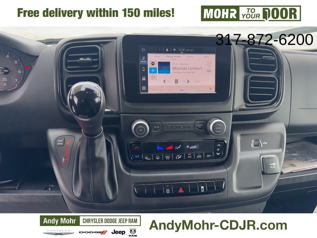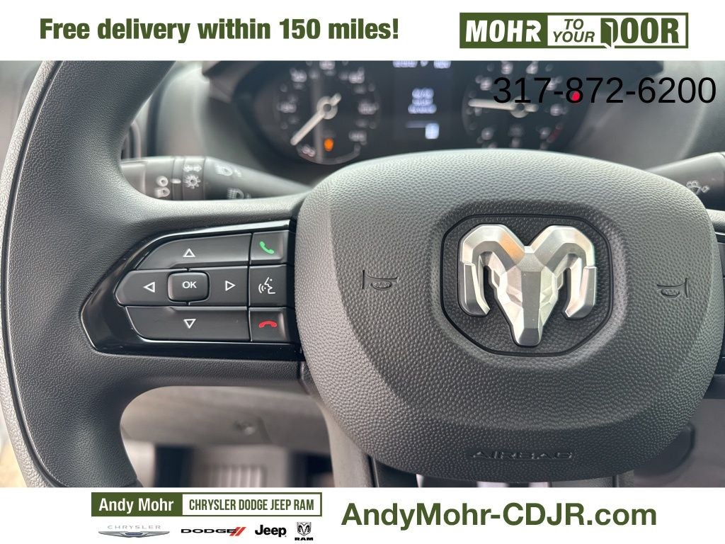 Convenience Group (Exterior Mirrors w/Heating Element, Exterior Mirrors w/Supplemental Signals, Front Fog Lamps, Power Adjust Mirrors, Power Folding/Heated Mirrors, Power-Adjustable Convex Aux Mirrors, Power-Folding Mirrors, and Rear Cargo LED Lamp), Quick Order Package 22B Tradesman w/Pass Seat (4-Way Manual Adjust Front Passenger Seat and Passenger Bucket Seat), Upfitter's Prep Package (Auxiliary Switches and Upfitter Electronic Module (VSIM)), Adaptive Cruise Control w/Stop & Go, Apple CarPlay, ParkView Rear Back-Up Camera, Remote keyless entry, 4 Speakers, 4-Wheel Disc Brakes, 4.08 Axle Ratio, 4G LTE Wi-Fi Hotspot, ABS brakes, Air Conditioning, AM/FM radio: SiriusXM, Apple CarPlay/Android Auto, Black/Gray Seats, Bodyside moldings, Brake assist, Class IV Receiver Hitch, Cloth Bucket Seats, Connectivity - US/Canada, Driver door bin, Driver Seat Armrest, Driver's Seat Mounted Armrest, Electronic Stability Control, For Details, Visit DriveUconnect.com, For More Info, Call 800-643-2112, Front anti-roll bar, Front Bucket Seats, Front License Plate Bracket, Front reading lights, Front wheel independent suspension, Global Telematics Box Module (TBM), Google Android Auto, GPS Antenna Input, Heavy Duty Suspension, Illuminated entry, Low tire pressure warning, Manufacturer's Statement of Origin, Outside temperature display, Overhead airbag, Overhead console, Passenger door bin, Power steering, Power windows, Radio: Uconnect 5 w/7 Display, SiriusXM Radio Service, Steering wheel mounted audio controls, Tachometer, Telescoping steering wheel, Traction control, Trip computer, Turn signal indicator mirrors, Variably intermittent wipers, Wheel Center Cap, and Wheels: 16 x 6.0 SteeL. Price includes: $2000 - 2025 National Select Inventory Bonus Cash w/ 3FV . Exp. 02/02/2026 $5000 - 2025 National Bonus Cash . Exp. 02/02/2026