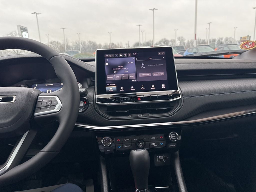 Andy Mohr Chrysler Dodge Jeep Ram is proud to offer this 2026 Jeep Compass Latitude in Hydro Blue Pearlcoat with Black Cloth. This Compass is very well equipped with MOPAR All Weather Package (MOPAR All-Weather Floor Mats and MOPAR Molded Cargo Tray), Heated door mirrors, Heated front seats, Heated steering wheel, Leather steering wheel, Power windows, Rear window defroster, Remote keyless entry, Telescoping steering wheel, and Windshield Wiper De-Icer.