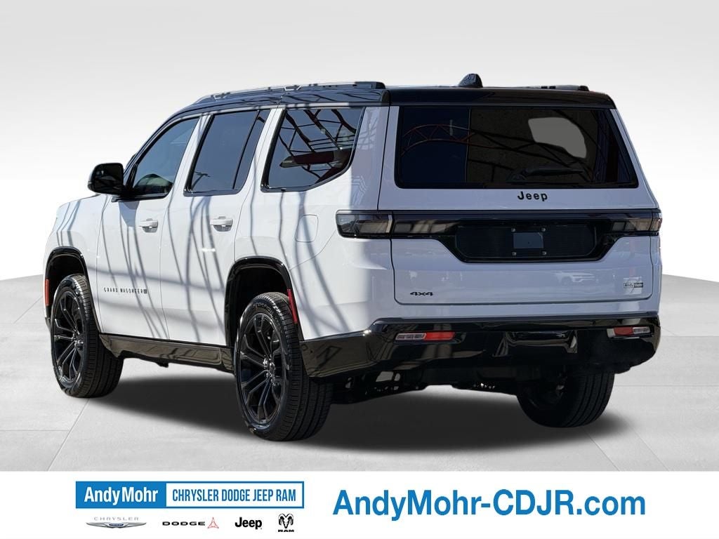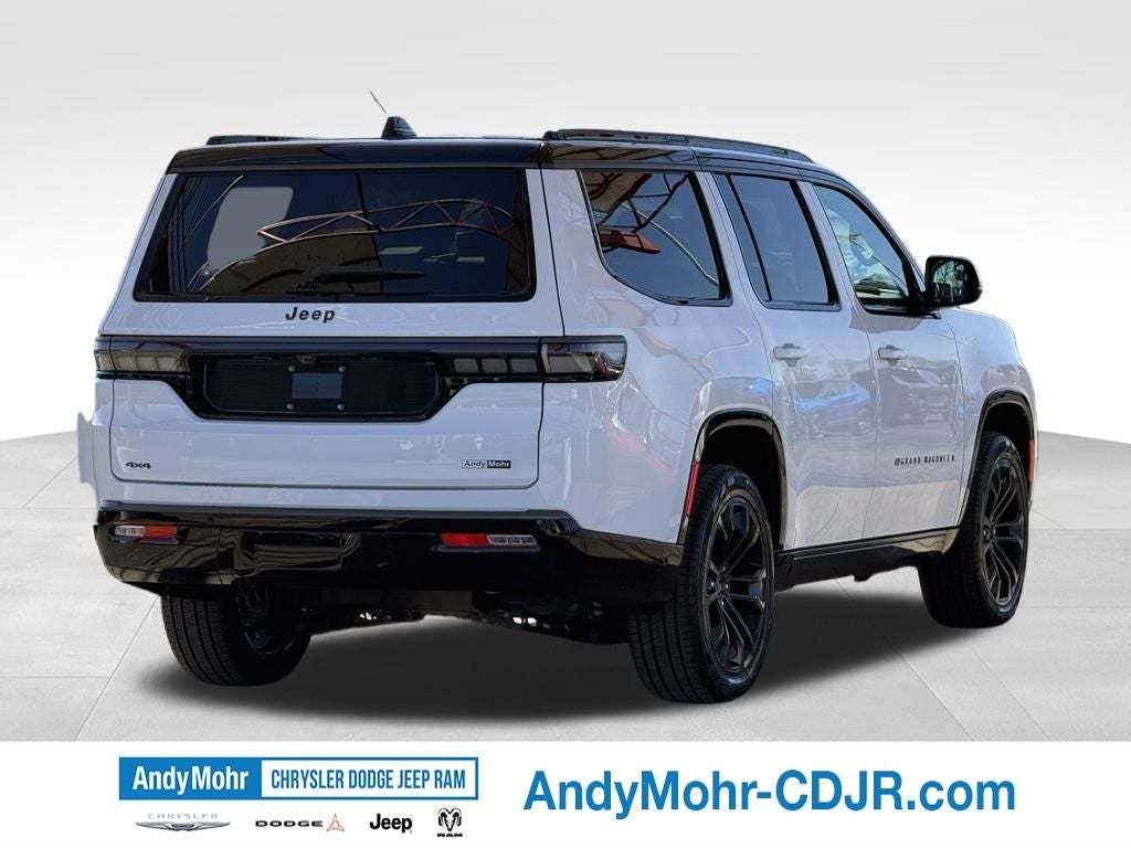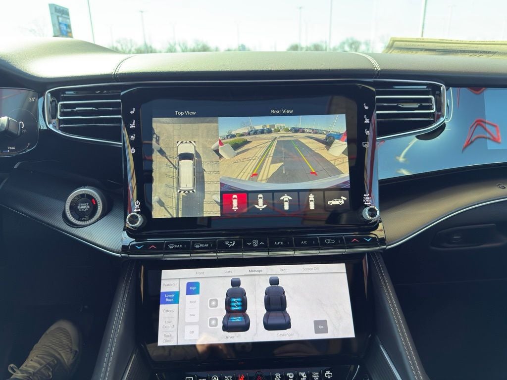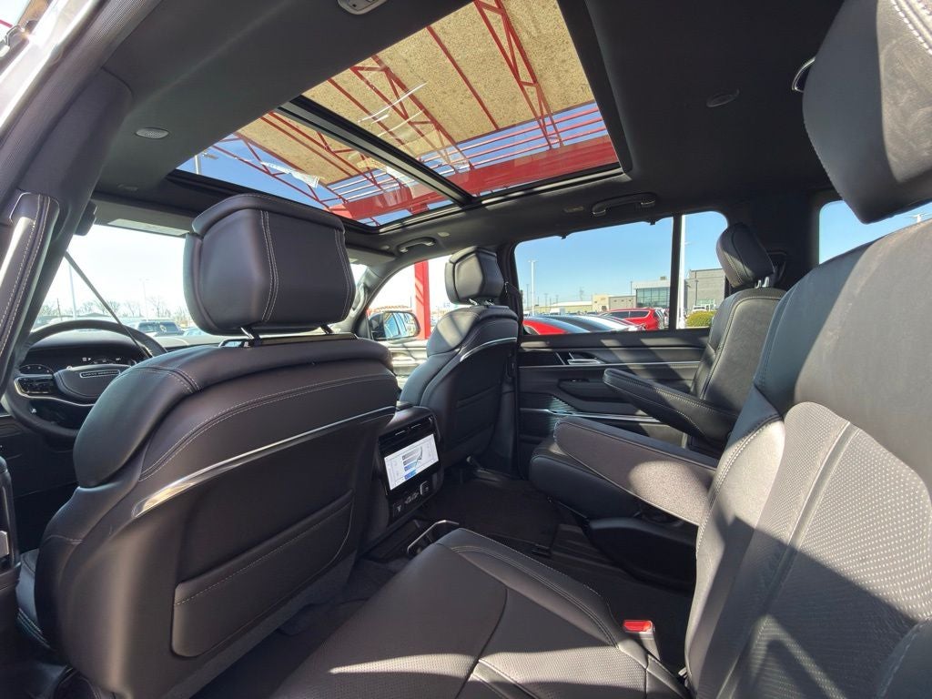 Obsidian Appearance Package, Premium Group III (Cargo Cover, Front Passenger Interactive Display, Rearview Autodim Digital Display Mirror, Reversible Carpet/Vinyl Cargo Mat, and Ventilated Rear Seats), Quick Order Package 29Z Obsidian (Titanium Upper Grille Applique, Wheels: 22 x 9 Tinted Polished with Black Insert, Black Chiseled Metal Interior Accent, Black Exterior Accents, and Titanium Daylight Opening Upper), Two Tone Paint Group, 19 Speakers, Apple CarPlay/Android Auto, Exterior Parking Camera Rear, Heads-Up Display, Heated Exterior Mirrors, Heated front seats, Heated steering wheel, Low tire pressure warning, Memory seat, Power Liftgate, Power moonroof, Reclining 3rd row seat, Remote keyless entry, 118 Mph Maximum Speed Calibration, 3.55 Rear Axle Ratio, 3rd row seats: bench, 4-Wheel Disc Brakes, ABS brakes, Adaptive suspension, Air Conditioning, Alloy wheels, AM/FM radio: SiriusXM with 360L, Anti-whiplash front head restraints, Audio memory, Auto Adjust in Reverse Exterior Mirrors, Auto High-beam Headlights, Auto-dimming door mirrors, Auto-Dimming Exterior Driver Mirror, Auto-dimming Rear-View mirror, Auto-leveling suspension, Automatic temperature control, Brake assist, Bumpers: body-color, Compass, Delay-off headlights, Driver door bin, Driver vanity mirror, Driver's Seat Mounted Armrest, Dual front impact airbags, Dual front side impact airbags, Electronic Stability Control, Emergency communication system: Jeep Connect, Exterior Mirrors Approach Lamps, Exterior Mirrors with Memory, Exterior Mirrors with Supplemental Signals, Four wheel independent suspension, Front anti-roll bar, Front Bucket Seats, Front Center Armrest w/Storage, Front dual zone A/C, Front fog lights, Front reading lights, Fully automatic headlights, Garage door transmitter, Heated door mirrors, Heated rear seats, Illuminated entry, Knee airbag, Leather steering wheel, Leather Trimmed Bucket Seats, Manufacturer Statement of Origin, Navigation System, Normal Duty Suspension, Occupant sensing airbag, Outside temperature display, Overhead airbag, Overhead console, Panic alarm, Passenger door bin, Passenger seat mounted armrest, Passenger vanity mirror, Power adjustable front head restraints, Power door mirrors, Power driver seat, Power passenger seat, Power steering, Power windows, Radio data system, Radio: Uconnect 5 Nav with 12.0 Display, Rain sensing wipers, Rear air conditioning, Rear anti-roll bar, Rear dual zone A/C, Rear reading lights, Rear seat center armrest, Rear window defroster, Rear window wiper, Security system, Speed control, Speed-sensing steering, Speed-Sensitive Wipers, Split folding rear seat, Steering wheel memory, Steering wheel mounted audio co
