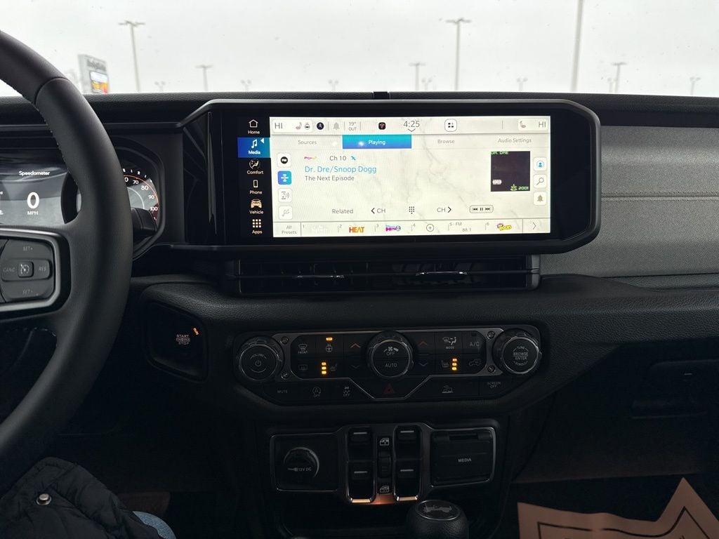 Convenience Group (Heated Front Seats, Heated Steering Wheel, 2-Door Passive Entry, Front Door Locks, Air Conditioning with Auto Temp Control, Air Filtering, Cluster 7.0 TFT Color Display, Emergency/Assistance Call, and Universal Garage Door Opener), Quick Order Package 24S Sport S (Power Heated Mirrors, Advanced Brake Assist, Automatic Headlamps, Corning Gorilla Glass, Deep Tint Sunscreen Windows, Enhanced Adaptive Cruise Control, Full Speed Forward Collision Warning Plus, Premium Wrapped Steering Wheel, Security Alarm, Sun Visors with Illuminated Vanity Mirrors, and Wheels: 17 x 7.5 Gray), Apple CarPlay/Android Auto, 12.3 Touchscreen Display, 3.45 Overall Top Gear Ratio, 4-Wheel Disc Brakes, 4G LTE Wi-Fi Hot Spot, 8 Speakers, ABS brakes, Air Conditioning, AM/FM radio: SiriusXM with 360L, Apple CarPlay, Aux Battery, Black 3-Piece Hard Top, Brake assist, Cloth Low-Back Bucket Seats, Compass, Connectivity - US/Canada, Delay-off headlights, Driver door bin, Driver vanity mirror, Dual front impact airbags, Dual front side impact airbags, Electronic Stability Control, For More Info, Call 800-643-2112, Freedom Panel Storage Bag, Front anti-roll bar, Front Bucket Seats, Front Center Armrest w/Storage, Front fog lights, Front reading lights, Google Android Auto, Illuminated entry, Integrated Center Stack Radio, Integrated roll-over protection, Low tire pressure warning, MOPAR All-Weather Floor Mats, Non-Lock Fuel Cap Without Discriminator, Normal Duty Suspension, Occupant sensing airbag, Outside temperature display, Overhead airbag, Panic alarm, ParkView Rear Back-Up Camera, Passenger door bin, Passenger vanity mirror, Power steering, Power windows, Radio data system, Radio: Uconnect 5 with 12.3 Display, Rear anti-roll bar, Rear reading lights, Rear Window Defroster, Rear Window Wiper/Washer, Remote keyless entry, SiriusXM Radio Service, SiriusXM with 360L, Speed control, Split folding rear seat, Steering wheel mounted audio controls, Stop-Start Dual Battery System, Tachometer, Telescoping steering wheel, Tilt steering wheel, Traction control, Trip computer, Variably intermittent wipers, and Wheels: 17 x 7.5 Black Steel StyleD.