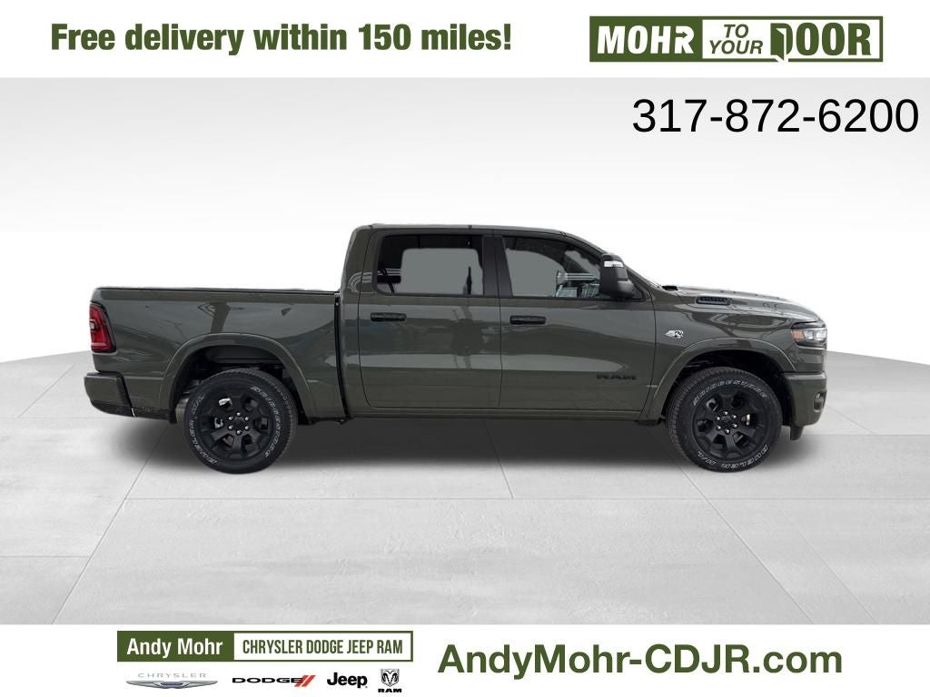 Big Horn Level 2 Equipment Group (115V Auxiliary Power Outlet, 115V Auxiliary Rear Power Outlet, 12 Touchscreen Display, 2nd Row in Floor Storage Bins, 3 Rear Seat Head Restraints, 4 Way Front Headrests, 400W Inverter, 4G LTE Wi-Fi Hot Spot, 9 Amplified Speakers with Subwoofer, Air Conditioning ATC with Dual Zone Control, Apple CarPlay, Auto Power-Folding Mirrors, Auto-Dimming Exterior Driver Mirror, Auto-Dimming Rear-View Mirror, Black Exterior Mirrors, Black Premium Power Mirrors, Body Color Fender Flares, Bucket Seats, Center Console Parts Module, Cluster 7.0 TFT Color Display, Configurable Drive Mode, Connected Travel and Traffic Services, Connectivity - US/Canada, Convex Wide-Angle Exterior Mirror Insert, Deluxe Cloth Bucket Seats, Disassociated Touchscreen Display, Exterior Mirrors Courtesy Lamps, Exterior Mirrors with Heating Element, Exterior Mirrors with Supplemental Signals, Front Seat Back Map Pockets, Full Length Floor Console, Global Telematics Box Module, Glove Box Lamp, Google Android Auto, GPS Antenna Input, GPS Navigation, HD Radio, Heated Front Seats, Heated Steering Wheel, Integrated Center Stack Radio, Integrated Voice Command with Bluetooth®, Leather Wrapped Steering Wheel, LED Dome Lamp with on/Off Switch, LED Footwell Lighting, Manual Adjust 4-Way Front Passenger Seat, Media Hub with 2 Charge Only USBs, Overhead LED Lamps, Power 2-Way Driver Lumbar Adjust, Power Adjust 8-Way Driver Seat, Power Adjustable Pedals, Premium Overhead Console, Radio: Uconnect 5 Navigation with 12.0 Display, Rear 60/40 Folding Seat, Rear Center Armrest, Rear Power Sliding Window, Rear Window Defroster, Remote Tailgate Release, Security Alarm, SiriusXM Radio Service, SiriusXM with 360L, Steering Wheel Mounted Audio Controls, Sun Visors with Illuminated Vanity Mirrors, Universal Garage Door Opener, and USB Host Flip), Night Edition (Accent Color Door Handles, Accent Color Premium Power Mirrors, Accent Color Tailgate Handle, Anti-Spin Differential Rear Axle, Black Exterior Truck Badging, Black Headlamp Bezels, Black Interior Accents, Black Painted Exterior Mirrors Caps, Black Tail Lamp Bezels, Body Color Front Bumper, Body Color Rear Bumper with Step Pads, Dual Exhaust with Black Tips, Grille Black Surround Black Mesh, RAM Grille Badge - Black, and Wheels: 20 x 9.0 Aluminum Painted Clad), Quick Order Package 27Z Big Horn, Towing Technology Group (Trailer Hitch Line-Up Assist), Trailer Tow Group II (Trailer Brake Control, Trailer Reverse Steering Control, and Trailer Tire Pressure Monitoring System), 12-Way/1-Way Trailer Connector, 4-Wheel Disc Brakes, 48V Belt Starter Generator, 6 Speakers, ABS brakes, Air Conditioning, Alloy wheels, AM/FM radio, Apple CarPlay/Android Auto, Auto High-beam Headlights, Black Trailer Tow Power Mirrors, Brake assist, Bumpers: chrome, Cloth Bucket Seats, Compass, Delay-off headlights, Driver door bin, Dual front impact airbags, Dual front side impact airbags, Electronic Stability Control, Front anti-roll bar, Front Bucket Seats, Front Center Armrest w/Storage, Front fog lights, Front License Plate Bracket, Front reading lights, Front wheel in Price includes: $3500 - 2026 National Retail Consumer Cash . Exp. 03/02/2026 $500 - 2026 Great Lakes BC Truck Month Bonus Cash . Exp. 0