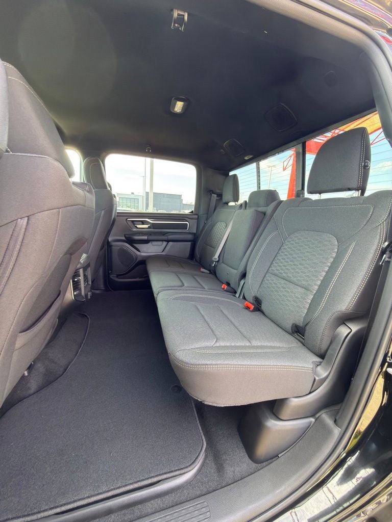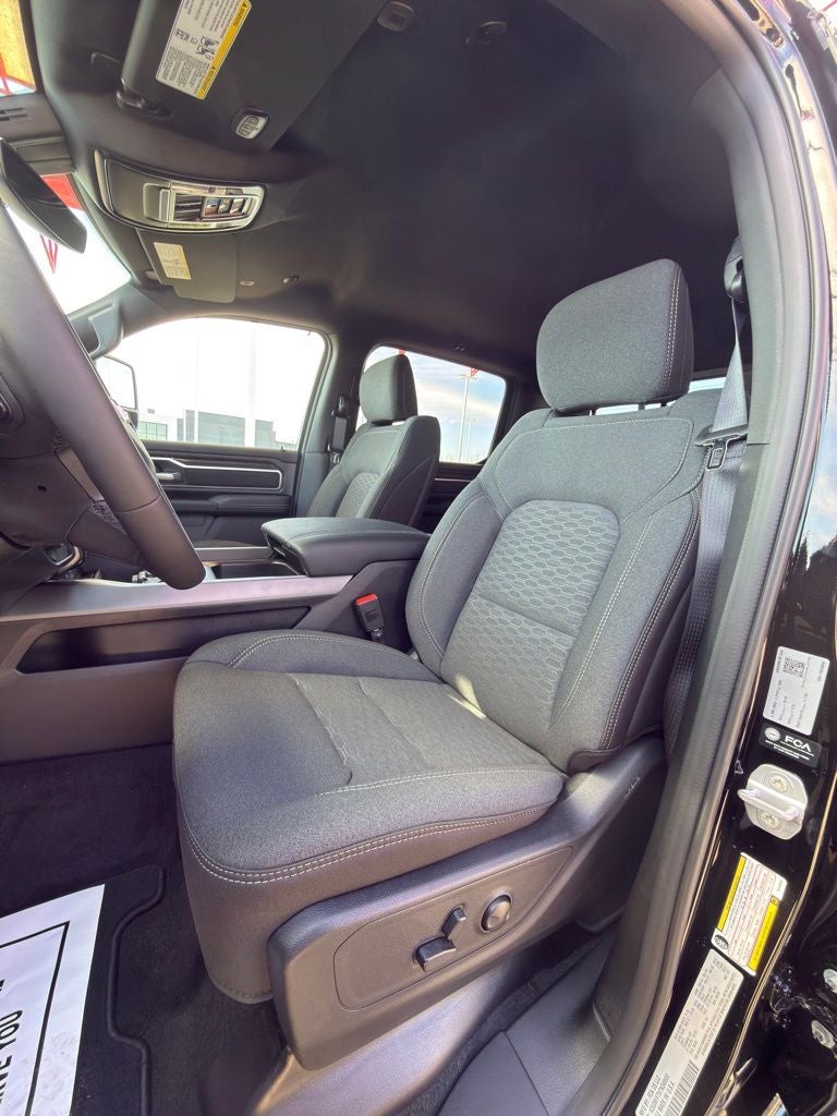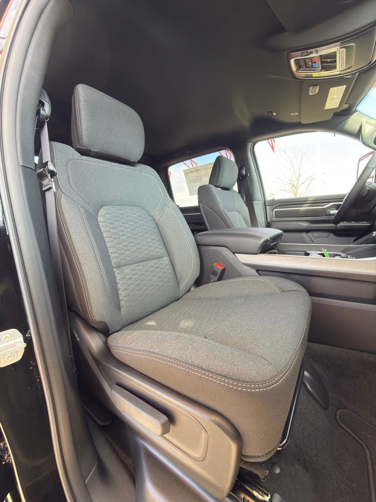 Elevate your driving experience with the premium touches that set this Ram 1500 apart. The black exterior accents, including the grille, badging, and mirror caps, create a bold and distinctive look. Inside, the deluxe cloth bucket seats and leather-wrapped steering wheel offer exceptional comfort and style.