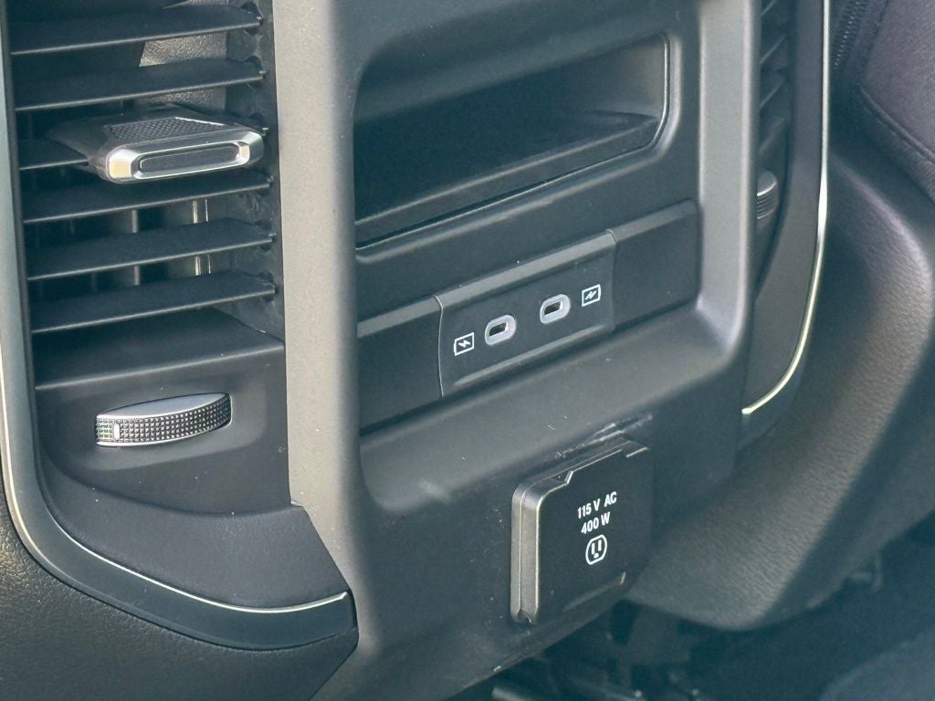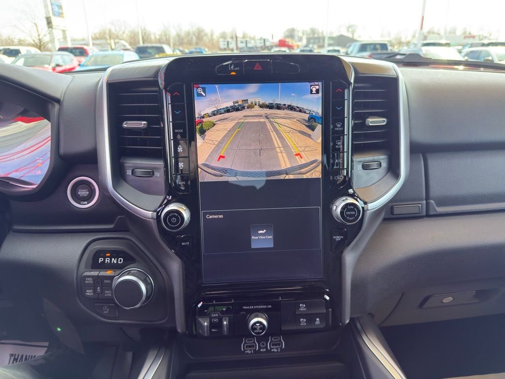 The attention to detail is evident throughout this well-equipped Ram 1500. Enjoy the convenience of a power-sliding rear window, remote tailgate release, and a 400W inverter. Stay connected with Apple CarPlay, Android Auto, and a 4G LTE Wi-Fi hotspot. Safety features like trailer brake control, trailer reverse steering control, and trailer tire pressure monitoring system provide added peace of mind when towing.