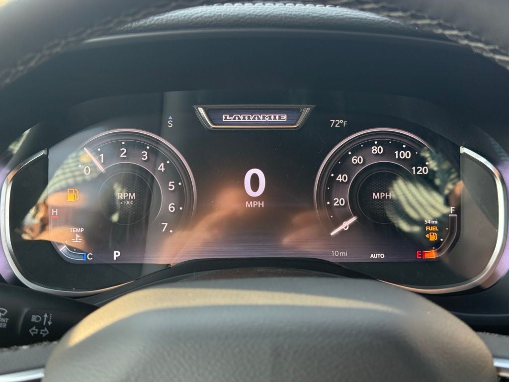 The Laramie's luxurious interior boasts leather-trimmed bucket seats with heating and ventilation, as well as a heated steering wheel and dual-zone automatic climate control. The 12 full-color driver information display and integrated voice command with Bluetooth® further enhance the cabin's sophistication.