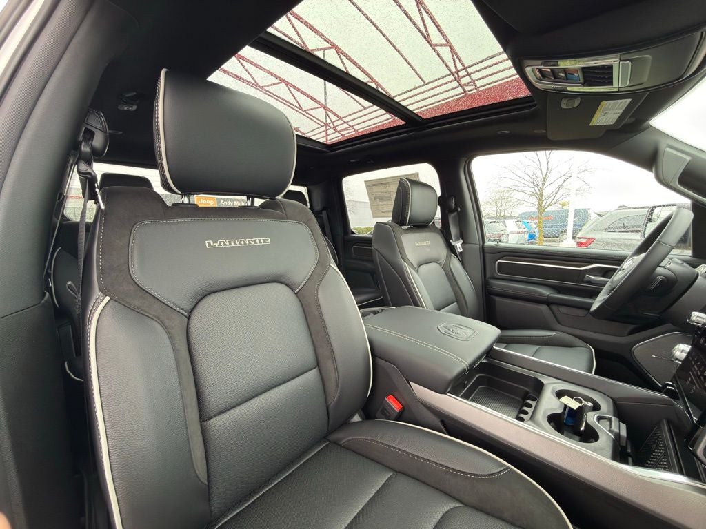 - Luxurious Laramie Level 2 Equipment Group with a 14.4 Uconnect 5 Navigation display, Harman/Kardon 19-speaker premium sound system, and Dual-Pane Panoramic Sunroof