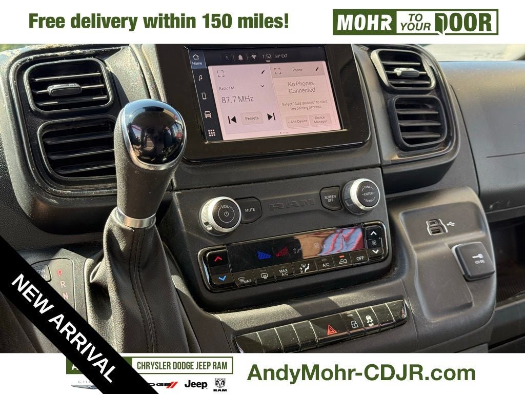Beyond these standout amenities, this ProMaster 2500 is also equipped with a range of practical and convenient features, such as AM/FM radio with SiriusXM, air conditioning, power windows, and remote keyless entry. The advanced Uconnect 5 infotainment system with a 7-inch display keeps you connected and entertained on the road.